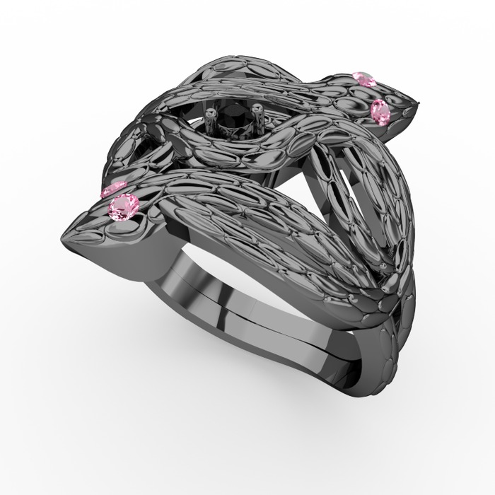 Siyah zirkon ve pembe kuvars 925 ayar siyah rodyum kaplama gümüş yüzük