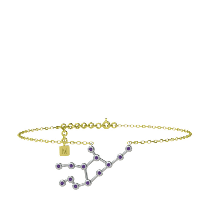 Ametist 14 ayar beyaz altın bilezik (20 cm altın rolo zincir)