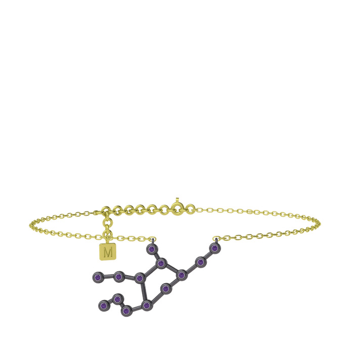 Ametist 925 ayar siyah rodyum kaplama gümüş bilezik (20 cm altın rolo zincir)