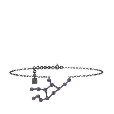 Ametist 925 ayar siyah rodyum kaplama gümüş bilezik (20 cm gümüş rolo zincir)