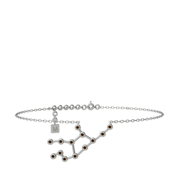 Dumanlı kuvars 14 ayar beyaz altın bilezik (20 cm beyaz altın rolo zincir)