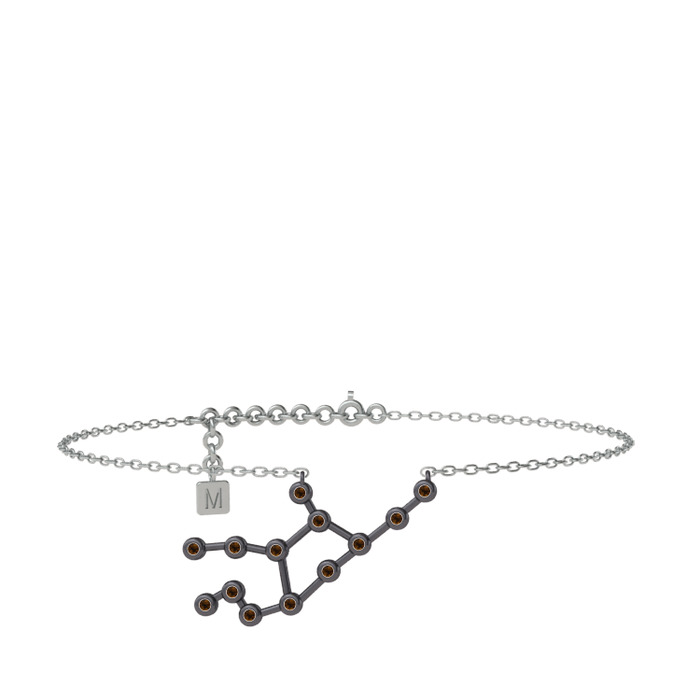 Dumanlı kuvars 925 ayar siyah rodyum kaplama gümüş bilezik (20 cm beyaz altın rolo zincir)