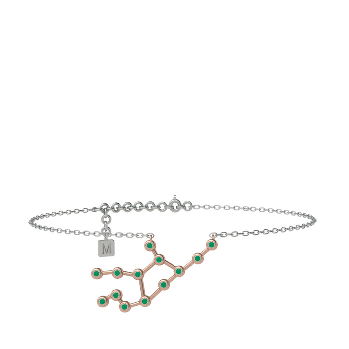 Virgo Halhal - Kök zümrüt 14 ayar rose altın bilezik (20 cm beyaz altın rolo zincir)