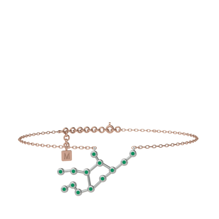 Kök zümrüt 8 ayar beyaz altın bilezik (20 cm rose altın rolo zincir)