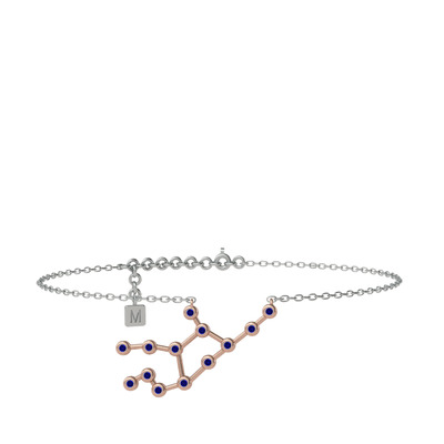Lab safir 8 ayar rose altın bilezik (20 cm beyaz altın rolo zincir)