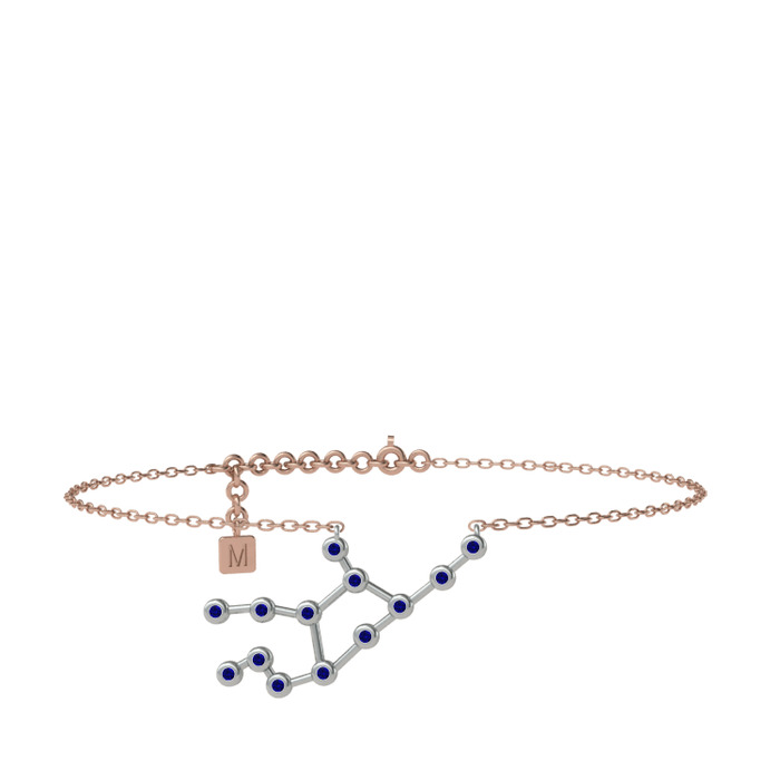 Lab safir 925 ayar gümüş bilezik (20 cm rose altın rolo zincir)