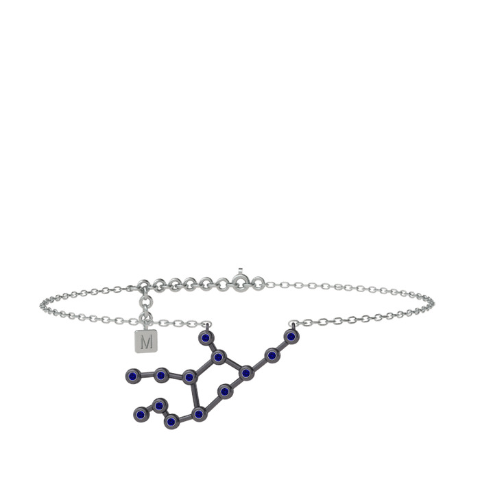 Lab safir 925 ayar siyah rodyum kaplama gümüş bilezik (20 cm beyaz altın rolo zincir)