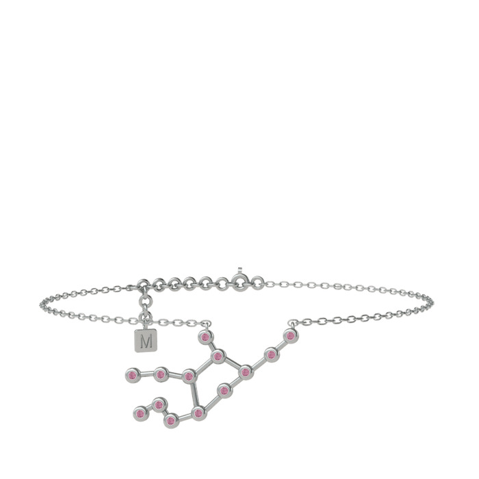 Pembe kuvars 18 ayar beyaz altın bilezik (20 cm beyaz altın rolo zincir)