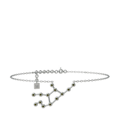Peridot 14 ayar beyaz altın bilezik (20 cm gümüş rolo zincir)