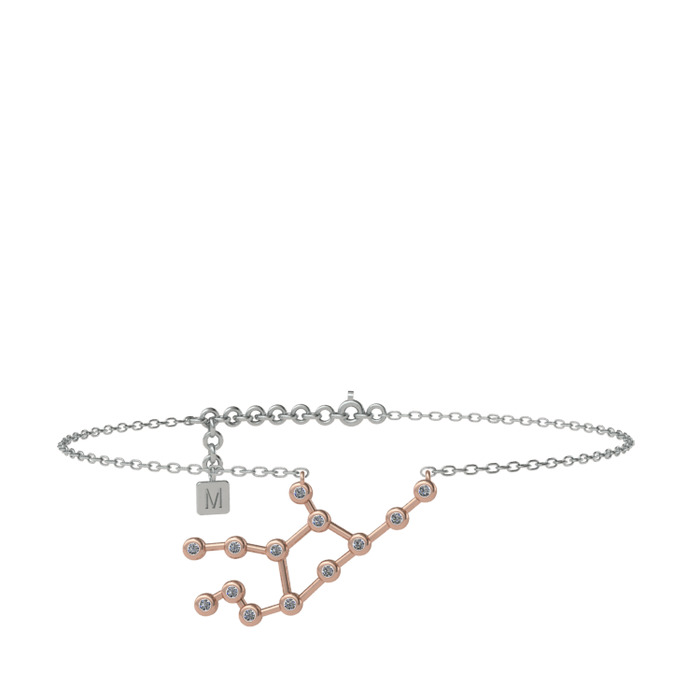 Pırlanta 18 ayar rose altın bilezik (0.143 karat, 20 cm beyaz altın rolo zincir)
