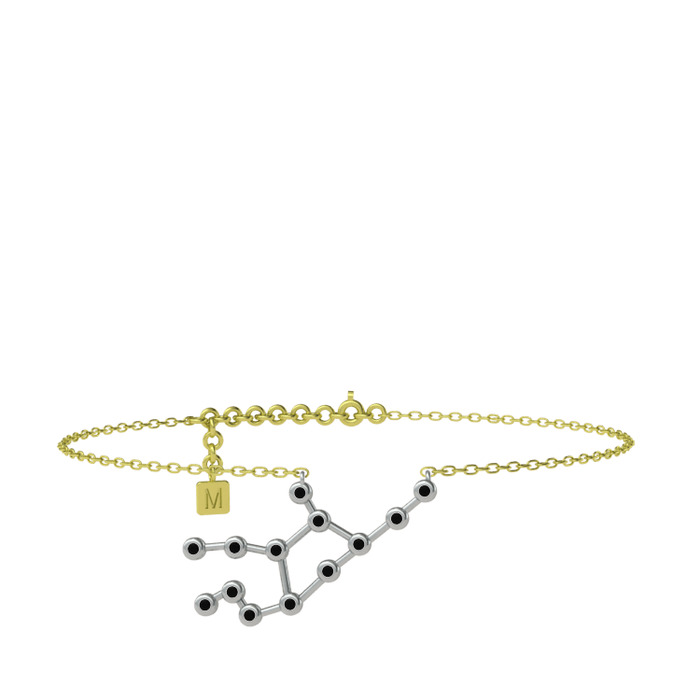 Siyah zirkon 925 ayar gümüş bilezik (20 cm altın rolo zincir)