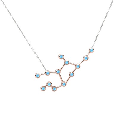 Akuamarin 925 ayar rose altın kaplama gümüş kolye (40 cm beyaz altın rolo zincir)