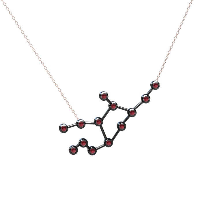 Kök yakut 925 ayar siyah rodyum kaplama gümüş kolye (40 cm rose altın rolo zincir)