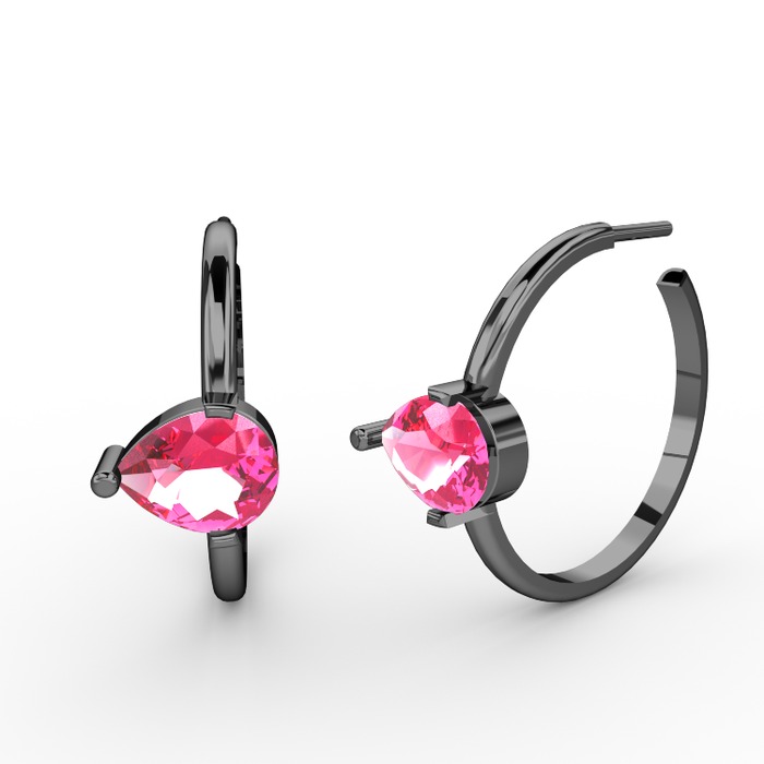 Pembe kuvars 925 ayar siyah rodyum kaplama gümüş küpe