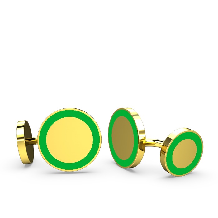 925 ayar altın kaplama gümüş kol düğmesi (Yeşil mineli)
