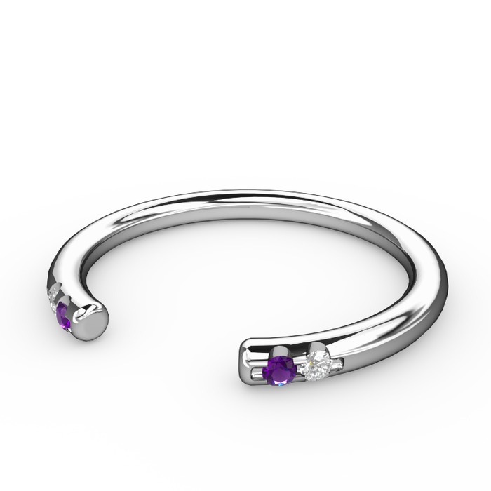 Ametist ve pırlanta 18 ayar beyaz altın yüzük (0.03 karat)