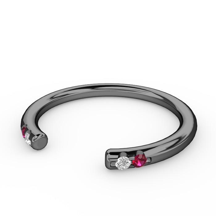 Beyaz zirkon ve rodolit garnet 925 ayar siyah rodyum kaplama gümüş yüzük