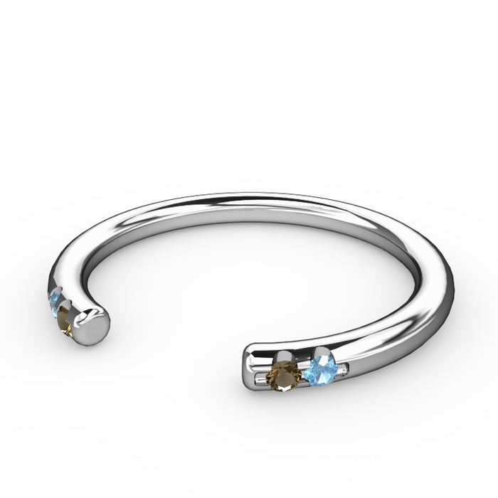 Dumanlı kuvars ve akuamarin 14 ayar beyaz altın yüzük