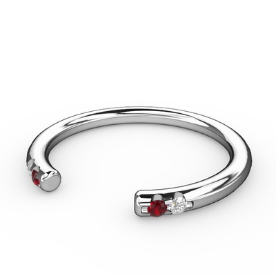 Garnet ve pırlanta 18 ayar beyaz altın yüzük (0.03 karat)