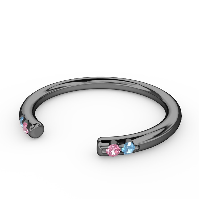Pembe kuvars ve akuamarin 925 ayar siyah rodyum kaplama gümüş yüzük