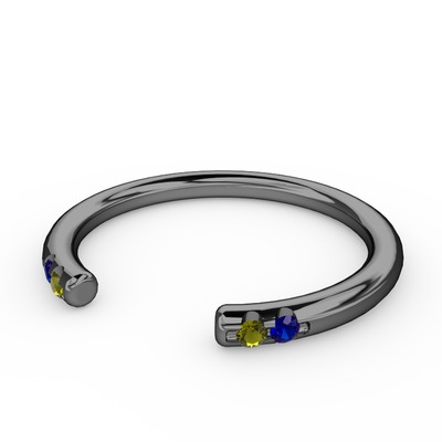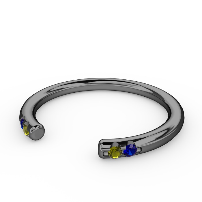 Peridot ve lab safir 925 ayar siyah rodyum kaplama gümüş yüzük
