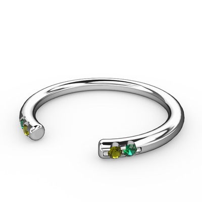 Peridot ve yeşil kuvars 14 ayar beyaz altın yüzük