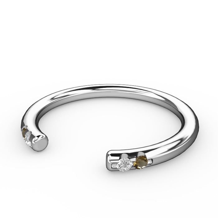 Pırlanta ve dumanlı kuvars 8 ayar beyaz altın yüzük (0.03 karat)