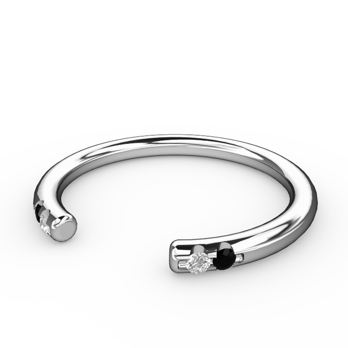Pırlanta ve siyah zirkon 18 ayar beyaz altın yüzük (0.03 karat)