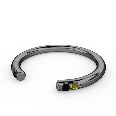 Siyah zirkon ve peridot 925 ayar siyah rodyum kaplama gümüş yüzük