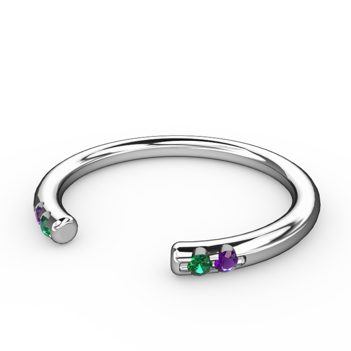 Yeşil kuvars ve ametist 8 ayar beyaz altın yüzük