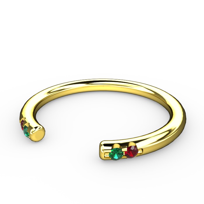 Çok kibar bir yüzük. Ne yazık ki beyaz taş kullanmak gibi bir hataya düşmüşüm. Taşların daha büyük olacağını düşündüğüm için daha şık olur diye düşünmüştüm. Mutlaka renkli taş kullanılmalı. Bunun haricinde çok tatlı bir yüzük, tavsiye ediyorum.