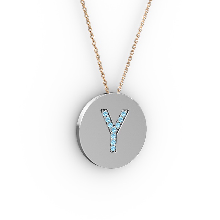 Akuamarin 8 ayar beyaz altın kolye (40 cm rose altın rolo zincir)