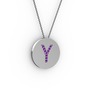Ametist 8 ayar beyaz altın kolye (40 cm gümüş rolo zincir)