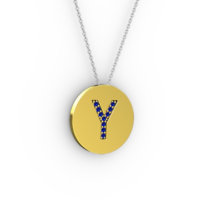 Lab safir 18 ayar altın kolye (40 cm gümüş rolo zincir)