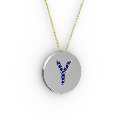 Lab safir 18 ayar beyaz altın kolye (40 cm altın rolo zincir)