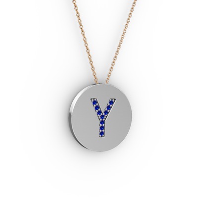 Lab safir 18 ayar beyaz altın kolye (40 cm rose altın rolo zincir)
