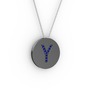Lab safir 925 ayar siyah rodyum kaplama gümüş kolye (40 cm gümüş rolo zincir)