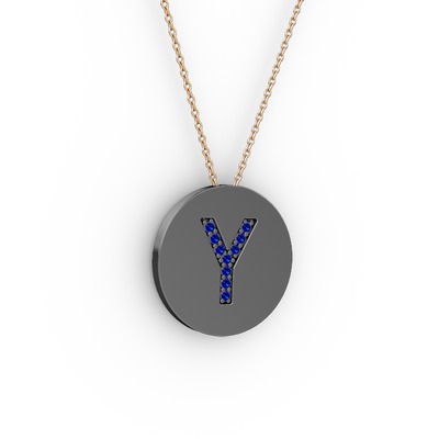 Lab safir 925 ayar siyah rodyum kaplama gümüş kolye (40 cm rose altın rolo zincir)