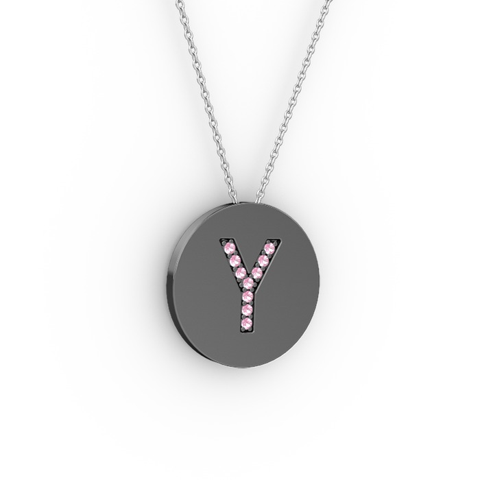 Pembe kuvars 925 ayar siyah rodyum kaplama gümüş kolye (40 cm beyaz altın rolo zincir)