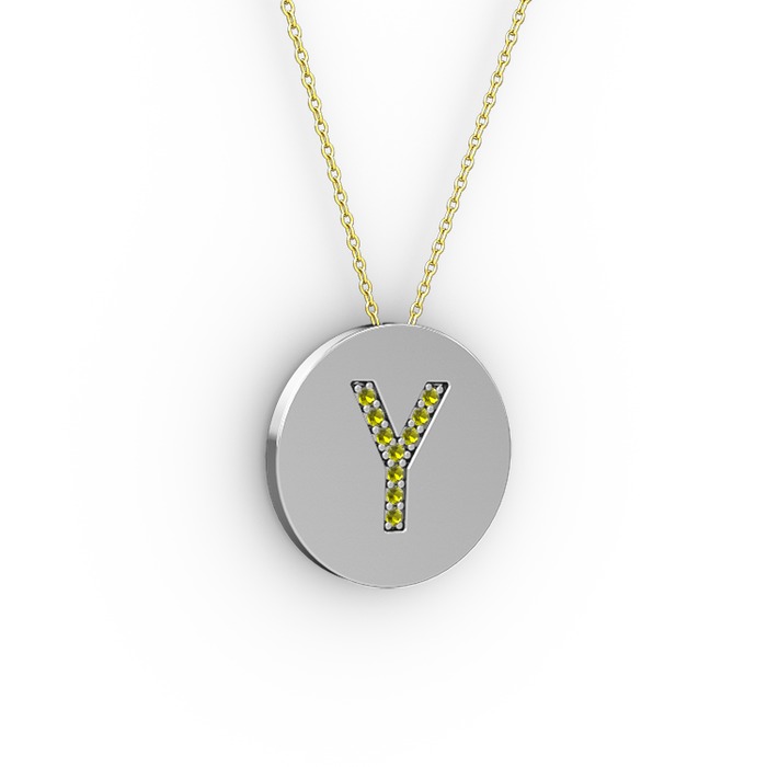 Peridot 18 ayar beyaz altın kolye (40 cm altın rolo zincir)