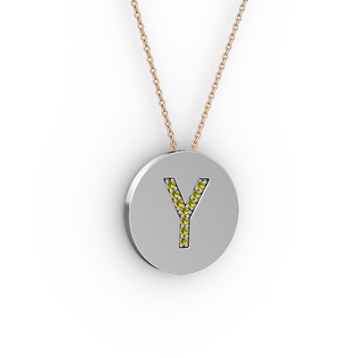 Peridot 18 ayar beyaz altın kolye (40 cm rose altın rolo zincir)