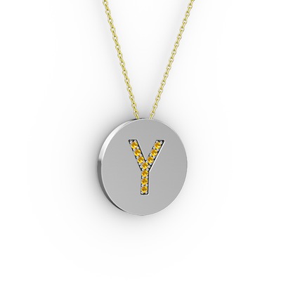 Sitrin 925 ayar gümüş kolye (40 cm altın rolo zincir)