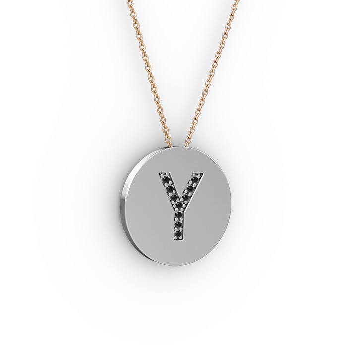 Siyah zirkon 14 ayar beyaz altın kolye (40 cm rose altın rolo zincir)