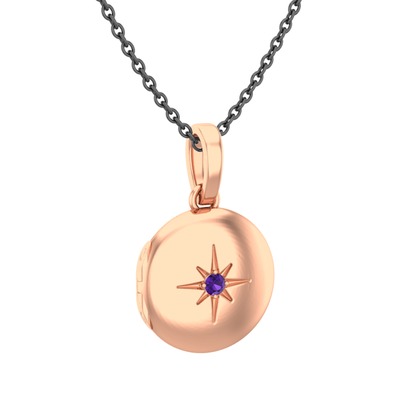 Ametist 14 ayar rose altın kolye (40 cm gümüş rolo zincir)
