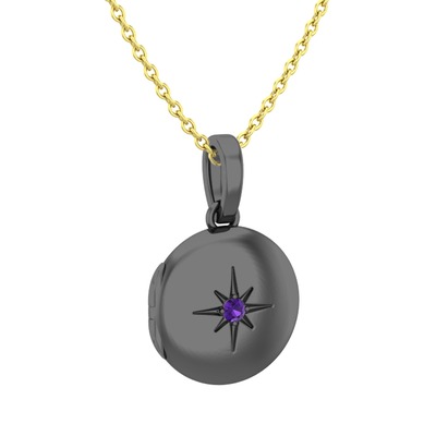 Ametist 925 ayar siyah rodyum kaplama gümüş kolye (40 cm gümüş rolo zincir)