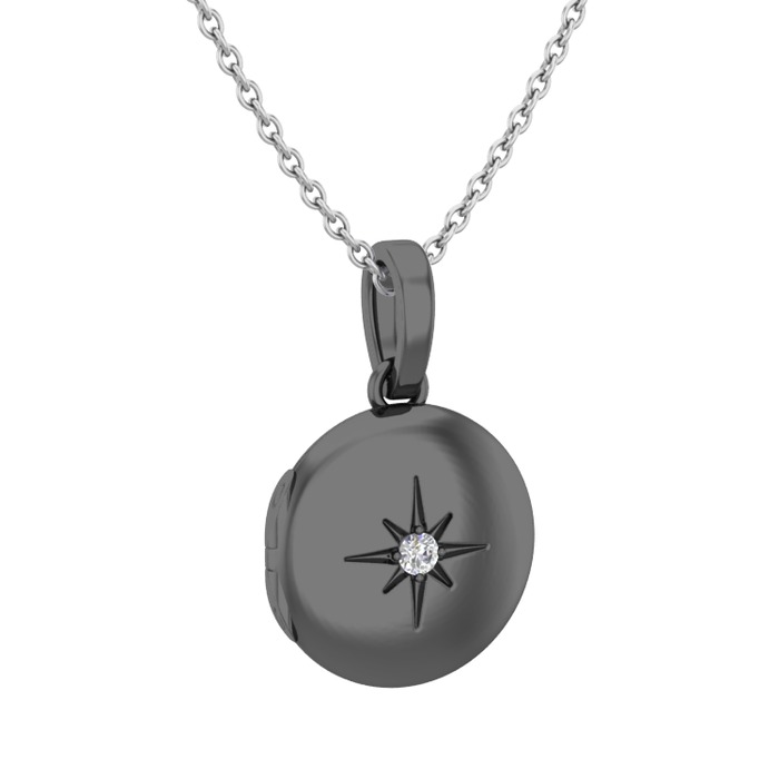 Beyaz zirkon 925 ayar siyah rodyum kaplama gümüş kolye (40 cm beyaz altın rolo zincir)
