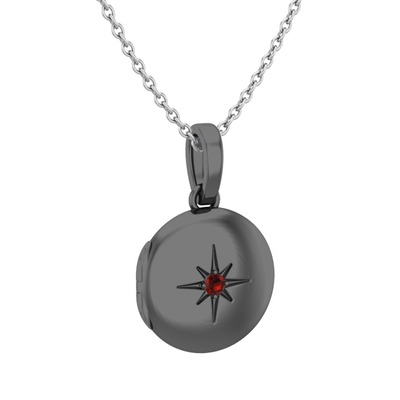 Garnet 925 ayar siyah rodyum kaplama gümüş kolye (40 cm beyaz altın rolo zincir)