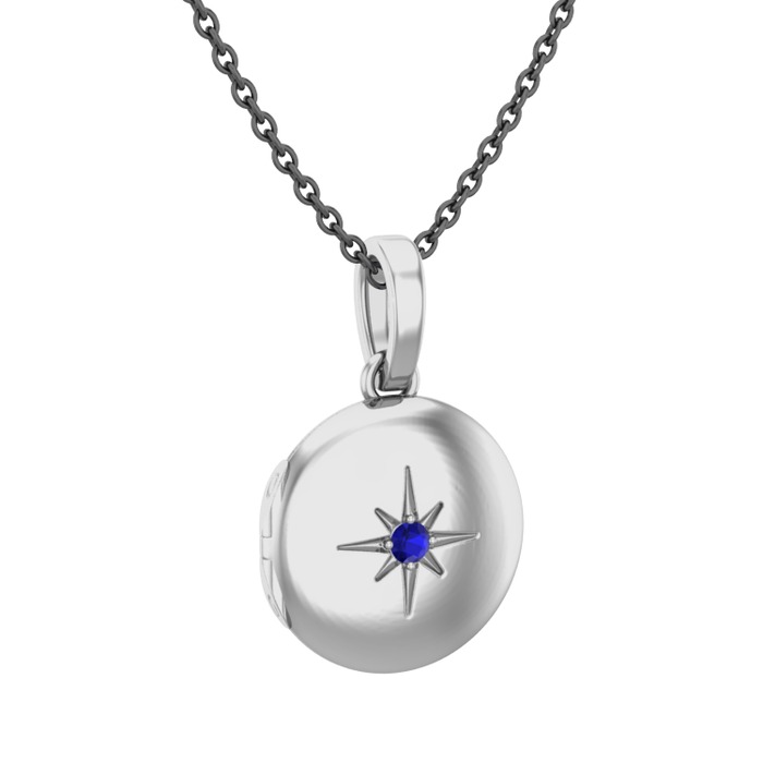 Lab safir 18 ayar beyaz altın kolye (40 cm gümüş rolo zincir)
