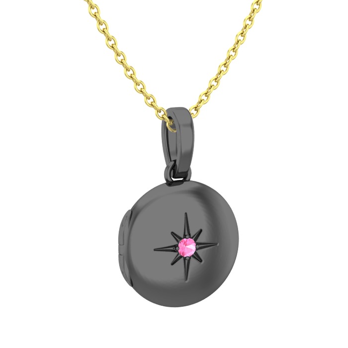 Pembe kuvars 925 ayar siyah rodyum kaplama gümüş kolye (40 cm altın rolo zincir)