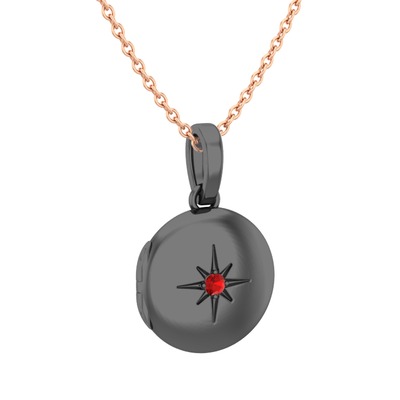 Rodolit garnet 925 ayar siyah rodyum kaplama gümüş kolye (40 cm rose altın rolo zincir)